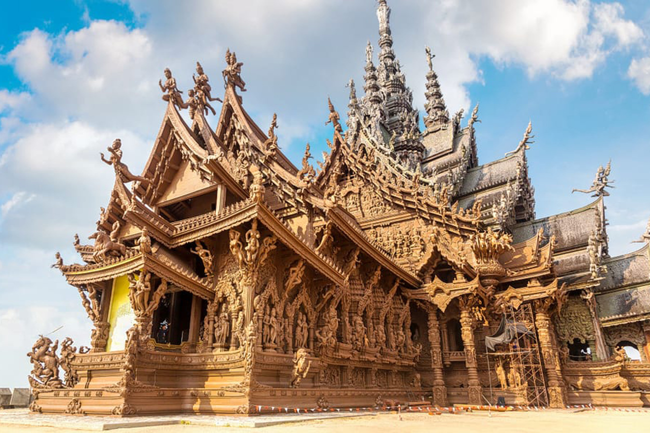 The Sanctuary of Truth is an unfinished museum in Pattaya, Thailand designed by Thai businessman Lek Viriyaphan. The museum structure is a hybrid of a temple and a castle that is themed on the Ayutthaya Kingdom and of Buddhist and Hindu beliefs.