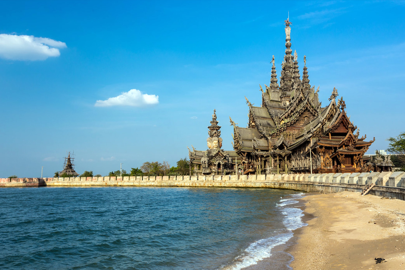 The Sanctuary of Truth is an unfinished museum in Pattaya, Thailand designed by Thai businessman Lek Viriyaphan. The museum structure is a hybrid of a temple and a castle that is themed on the Ayutthaya Kingdom and of Buddhist and Hindu beliefs.